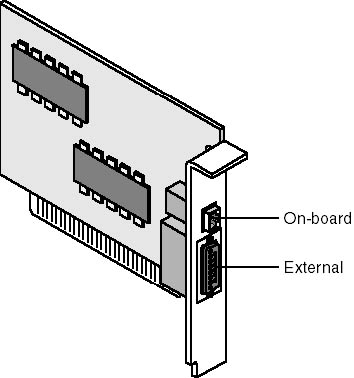 Figure 2.27 Network interface card showing external and on-board transceivers