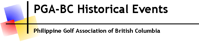 PGA's history dates back to 1975 when a handful of golf enthusiasts decided to get better organized. Some of these gentlemen are still with the PGA today: Rudy Mallari, Butch Dulay, Jorge Amoranto, and Orly dela Cuesta. Teeing up with St. Peter in heavenly golf are former Philippine Ambassador Vic Romero, Commercial Attache Joe Zarate, Frank Garcia, and Mr. Jalandoni.