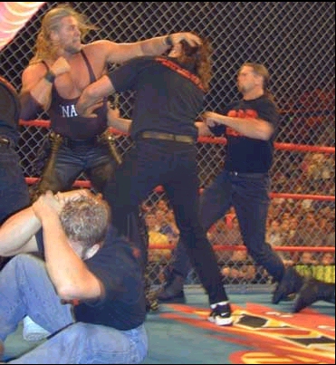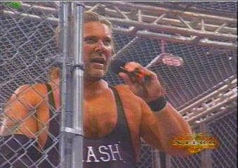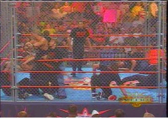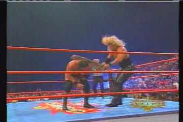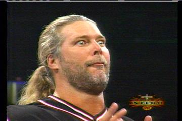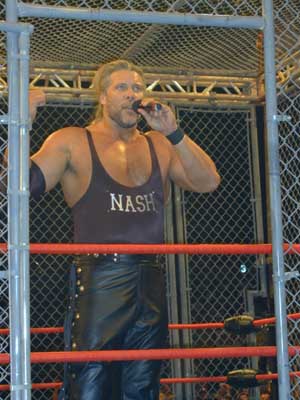 Kevin seemed to be everywhere last night as he made it his business to stop the reign of Vince Russo.He made his first save when R&B Security and Palumbo on the order of Vince Russo broke down the cage door to attack Lex Luger. Kevin Nash jumped in the ring and proceeded to decimate Security until Mike Awesome snuck in and stopped him in his tracks. Lex Luger,however managed to get to his feet and grab a pair of bolt cutters.Mike Awesome thought better of standing up to both men alone and fled to the ramp.As the NB started to retreat backtage, Kevin challenged Awesome to an Ambulance Match later in the show.