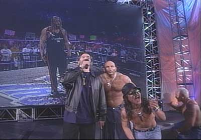 Kevin tried to do a good deed by running in to save Horace from a beating.The New Blood ran like cockroaches at the approach of Big Sexy but Russo came to the stage and had some choice words for Kevin.Russo said that he made Kevin cool in the WWF, and he would make him cool again. The the New Bloodbath fell from the ceiling, covering Kevin in the ring. Kevin stood there,smouldering with anger,then,slowly he stalked toward Russo who fled to the back along with Eric Bischoff.They got into their Limo and tried to drive off but Kevin and Hogan caught up to them with baseball bats and began demolishing the limo with them still inside.