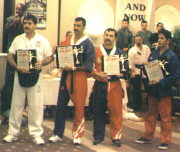 This picture is about my visit to LA California to compete in the March Madness tournament sponsored by Sensei Cecil Peoples.I traveled from Puerto Rico to Los Angeles with a group of more than 30 competitors from the west coast Kenpo Team and his captain;Sensei Willie Hernandez(Cecil Peoples Black Belt).I was with the Kenpo Team but also represented my system(JU-KA-KUNG-KEMPO of P.R.Inc. It happened that Sensei Cecil & my teacher,Sifu Bill Owens were old friends who used to compete against each other for 1st & 2nd and they also met at this memorable event.I met a lot of beautiful Martial Artist there & trained with them also.To mention a few:Sifu Eric Lee,Sifu Al J.Dacascos; Sifu Earl White;Guru Roger Agbulos(LAMECO);Sensei Carlos Rodriguez from Miami Florida & Sensei Cecil Peoples & his Black Belts.I had the chance of helping Sensei Cecil in his Dojo & also helped with the Kenpo Team.My Sifu Bill Owens promoted me to 4th Degree Black Sash in Chuan'Fa in this year. Once more I tested my heart & say that Martial Arts can change lifes.Need videos of this March Madness?Write me & will talk about sharing the knowledge involved in this memorable events. VIDEOS ON THIS TOURNAMENT;DEMOS & TOURNAMENTS IN PUERTO RICO;FOR FUNDS TO TRAVEL;WRITE TO: [email protected] ALSO HAVE VIDEOS ON HAWAII'93 & 94;PUERTO RICO TOURNAMENTS;DEMOS OF SELF-DEFENSE & CAPOEIRA. | ||||||||||||||||||||||||||