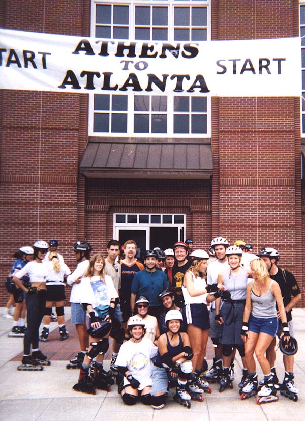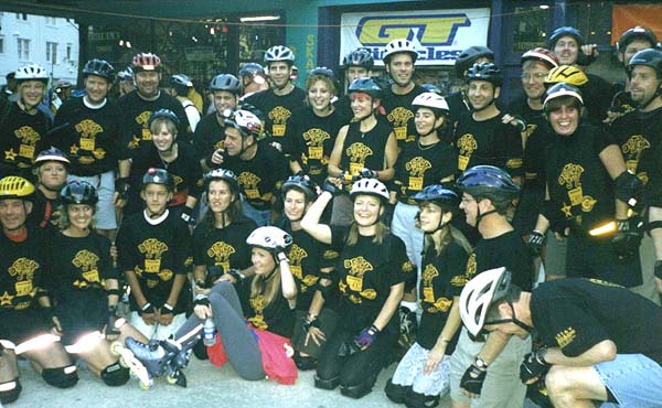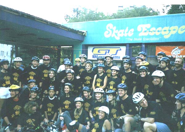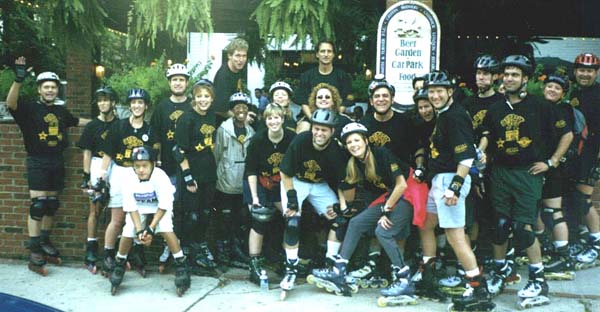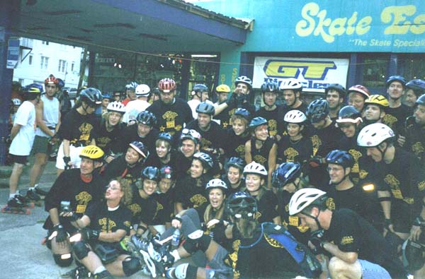 What a proud moment for the Detroit skate scene. Around 50 skaters from the Detroit area invaded Atlanta for the Friday night fun skate. We were certainly a dominating and intimidating force with our black and yellow Detroit gang shirts which set us apart from the rest of the skaters that night. We were the talk of the skate. Here we are in force before the skate.