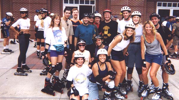 Some of the gang gather up for a picture before the Saturday warm up skate.