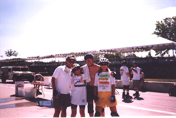 This years March of Dimes skate fund raiser was a huge improvement over last years event which was held at the Chrysler proving grounds in Auburn Hills where only 10 skaters showed up. This year it was held on Belle Isle on the grand prix track and at least 100 skaters made the event. It was a great time hanging with friends and meeting new friends. The organizers were happy enough with the event to promise an even better event next year by closing the whole course to traffic. The fun spilled over into that evening when some of us went to Metro Beach Park to swim, skate, and hear the Sun Messengers perform. Phil, Mary, me, and Kathy enjoy a perfect day on Belle Isle.