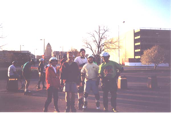 An unknown skater, Dave, Mike, Tom, Mary, and Brian at Z's other place.