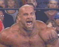 The Monster that is Bill Goldberg: Real Name: William Scott Goldberg Nicknames: Began wrestling as Bill Goldberg January 5th was claimed to ask to be referred to by his last name only January 12th request ignored and Larry Zbyszko even referred to him as "Wild" Bill Goldberg Birthdate: December 27, 1966 in Tulsa, Oklahoma Family: Parents: Jed - retired gynecologist Ethel - a former violinist for the Tulsa Symphony Brothers: Mike Works in airplane business Aspen, Colorado Roomed with former pro wrestler Ken Patera at the University of Minnesota Steve Sister: Barbara Girlfriend: Lisa, used to be involved in the wrestling business High School: Thomas Edison High School (Tulsa, Oklahoma) First team All-City, All-State (All classes) Blue Chip Prospect List by Tulsa World College: University of Georgia Redshirted 1985 Lettered 1986-1989 (http://www.sports.uga.edu/football/history/lettermen.html) Received "Most Promising Defensive Sophomore" at Georgia in 1987 Member of "Junkyard Dog Club" reserved for Georgia's best defensive players Received Georgia "Bone" in 1987 for INT vs. South Carolina. Award goes to players who make game-saving plays. Earned "Coffee County Hustle Award," the most prestigious spring football award, 1989. Defensive Captain. Career-high 19 tackles as senior vs. Florida. Started every game as a senior. All-American by Football News and All-SEC honoree by Associated Press as senior. Degree in Psychology Wore uniform #95 Played in 1990 Japan Bowl Professional Football: Roomed with WCW Superstar/Professional Football player Kevin Green while with the Rams Failed final preseason cut and was invited back following season only to be cut again Recorded 57 tackles and 3 sacks with Surge WLAF Championship ring with Surge, Spring 1992 Atlanta Falcons 1992-1994, wore #71 Tore abdomen which eventually ended career Drafted by Carolina Panthers, 1995 expansion draft. 33rd of 35 picks for Panthers (http://www.bbwc.com/History/NYG95/expdft95.html) Injuries prevented him from playing with Panthers Sports Encyclopedia of Pro Football: 6-2, 272 Nose tackle-defensive tackle No professional football trading cards made Professional Wrestling: "Mastered" Judo and Jujitsu Trained at Sting and Luger's gym since 1985 Trained at the WCW Powerplant for four months prior to his debut WCW lists him at 6'4", 285 lbs. Has $1000-plus video collection to study wrestling tapes Credits ringwork to Arn Anderson Debuted vs. Hugh Morrus on September 22nd Nitro Moves: Spear Dropkick Abdominal Body Scissors Gorilla Press into a Power Slam ...many submission holds... Finishing Move: Jackhammer Suplex | |||||||||||||||||||||||