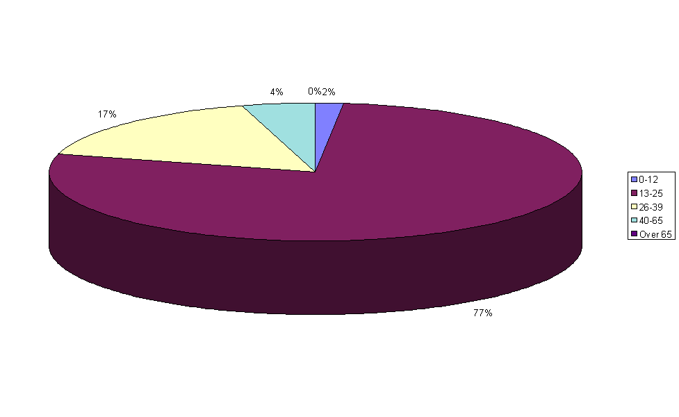 Three quarters of the Internet survey respondents were 13-25 years old. This is most likely because of they are more technologically literate than older age groups and more apt in finding their way from page to page. Since the Internet was the only data collection method which could be graphed it was always likely to be biased. But it is not a particularly negative thing as when the competition finally is settled in 2000, the younger population will take over from the older population with a new tradition.