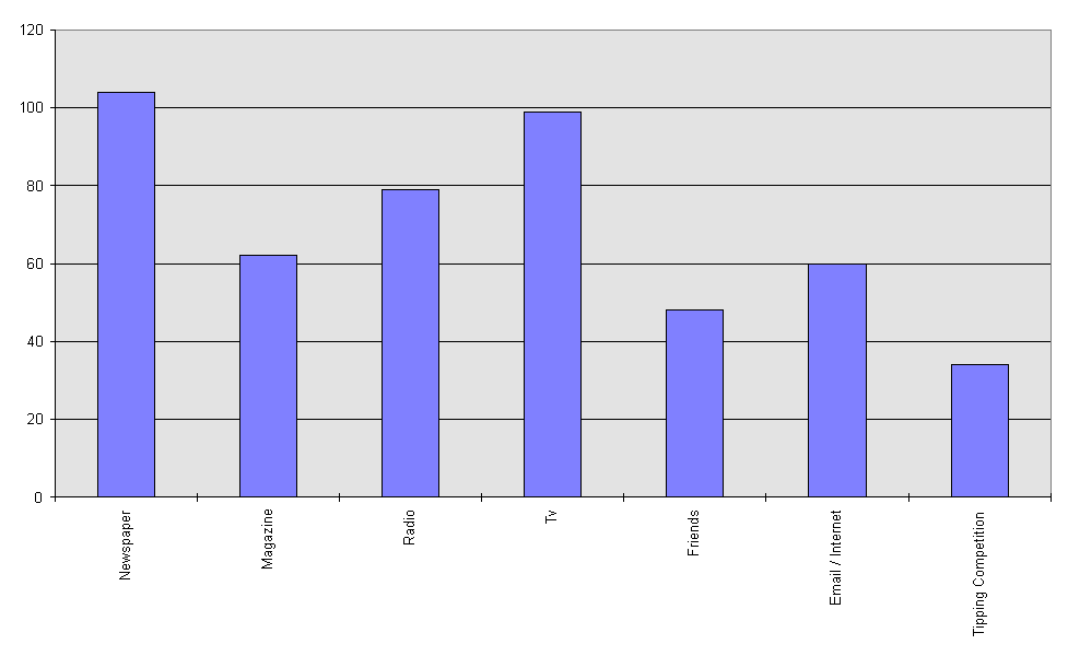 The newspaper is the most popular source of information for NRL news among the respondents, closely followed by TV, which emphasises the role in which the media play in the sport. The media play an essential part in any sport, as a sport has no profile not covered by the media.