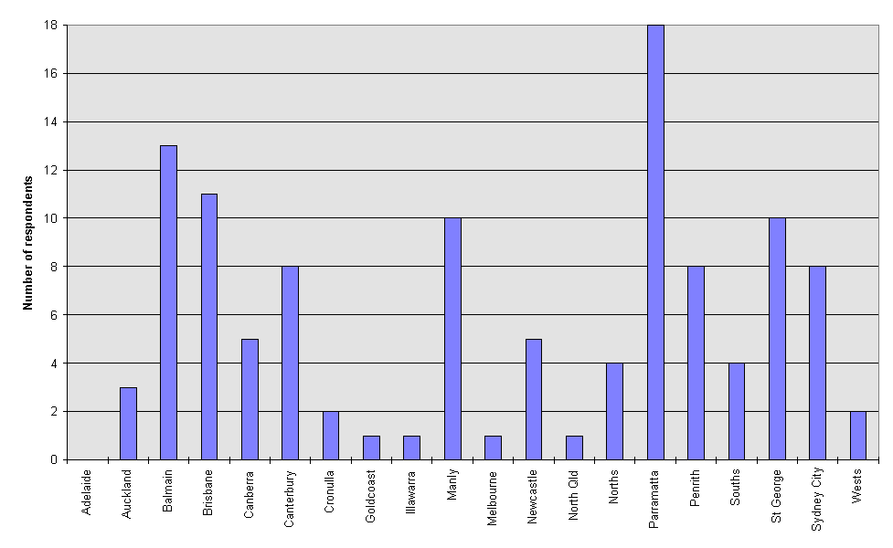 It is significant that 43 % of survey respondents were from outside Sydney, remembering that only seventeen years ago or so there were no teams in the competition from outside Sydney. With interest in the game expanding over the years as expansion clubs have been launched, South Australians and Victorians are displaying their interest. One major issue that is far from resolved is the rationalisation of the game and whether some of these expansion clubs should be kept. These results are proof that the game has raised interest in areas outside the traditional home of Rugby League (NSW and QLD) and there is no reason why New Zealanders and Victorians cannot follow the game too.