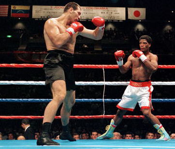 This months' featured prospect is the Russian Heavyweight, Nicolay Valouev. Valouev, who is currently 9-0 (7 KO's), is definately one of the largest fighters ever. Standing at 7'2" and weighing about 320 pounds, Valouev is a giant. But unlike many other 300+ lb. giants, Valouev is not covered with layer upon layer of flab, but instead he is well sculpted. Although he may not be a good technical boxer and he doesn't have blistering handspeed, Valouev does have a lot of raw power and size. Not only is he big and powerful, but he also possesses an incredibly long reach. If he learns how to throw an effective jab, he'll be able to hit his opponents from the other side of the ring. While he may never be a contender, Nicolay may (and he easily could) follow the same path as two other large Heavyweights; Paea Wolfgramm and Butterbean. But although he may indeed have some potential, the lure of becoming a side-show attraction may just pull him in (especially since he's being promoted by Main Events).