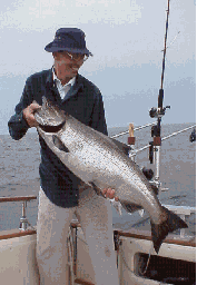 Mid day thunderstorms will clear the lake of fishermen, but those hardy enough to brave the adverse weather can often hit it big. Thunderstorms bring heavy seas and low light intensity which often triggers a feeding frenzy. During 99 one such storm came through Toronto and the boats scurried to port. We stayed as long as we could and landed several nice kings. The kings had moved over 40' in the water column and were feeding actively on