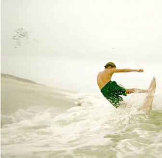 | here i am at the tender age of 13 skimboarding. this is at cisco beach in nantucket, where i spend my summers. Now you can find me almost everyday at Nobadeer skimboarding or bodyboarding. this summer (on one of the sickest skimboarding days of my life) this guy with a video camera filmed my friend andy and i doing some crazy shit...we had this phat wave where he swung in behind me and caught air while i cranked out a huge spray, i even got a shuvit off while rididng a wave. then we whatched the video on the beach...anyway the whole point of this story is to tell you that i will have some video footage of andy and i skimboarding, but i have to talk to the guy...who we see at nobadeer every year...cause i need a copy of the video so i ca