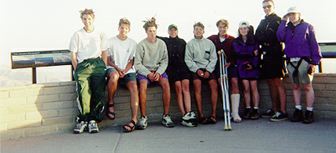 | here's the joshua tree crew from my second trip. From left to right: eric, jeff, mark (the most photographed man here) suzanne, me, joe who broke his ankle the sencond day there and hobled everywhere on one leg...his quads are steel, laura, garbos, kerry....missing-timmy, colleen, our intrepid leaders. | |||||