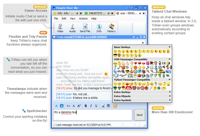 ICQ, IRC Messenger chatters. Different Emoticons to choose, simple and