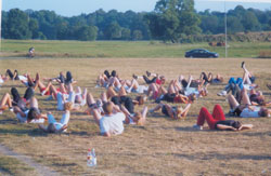 During summer, it's time for outdoor Friskis & Svetis (it means happy and sweaty or something similar). I had to go just once to experience it and it was fabulous entertainment. I gave up after rolling around on the grass for about 15 minutes.