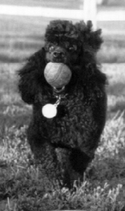 Tidbits: Rally holds the unique distinction of being the first show poodle owned by Denise! So he's kinda the guy who started the ball rolling. He really liked to win & LOVED to carry his winning ribbons out of the ring! At home, he was a ball player extraordinaire! Sadly, Rally suffered a fatal accident early in life (Christmas, 1986) & is still sorely missed by his family.