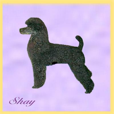 Tidbits: Shay is a combination breeding from Pin Oak poodles (Scott & Lisa Wolfe) and Sarian poodles (Sharon Wagner). She was Reserve Winner's Bitch (it's okay to say that, that's what we call girl dogs!) at the Poodle Club of America's (PCA) 1993 national specialty show. Quite an honor! She truly is beauty in motion. All we can say is, "Thanks Scott, Lisa & Sharon!"
