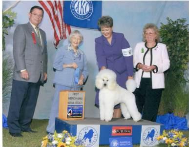 Stephan wins the miniature variety under judge Tom Carneal at the Great Lakes Poodle Specialty and goes Best Bred By Exhibitor in Show!!!
