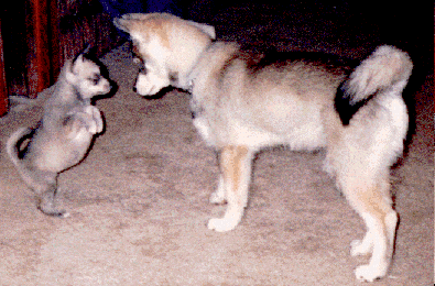 Kaltag at 4 mos. , my 3rd Klee Kai & Charlie at 1 yr., my 2nd Klee Kai