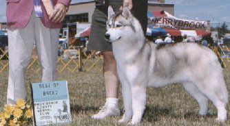 9/05 Fiedler is out in the show ring again, as a special now, being handled by Debbie Studwell. In just a short time, he has won 2 Best Of Opp. Sex, 5 Best of Breeds, several group placements, as well as an Award Of Merit at the CT Valley Siberian Husky Club's specialty.