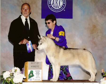 Squeak went Reserve Winners Dog to a major on July 9, 2004 at the Woodstock Dog Club Show in N. Haverhill, NH.