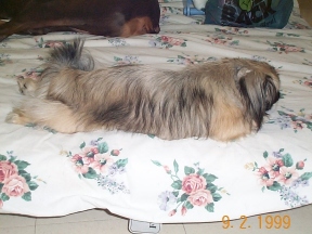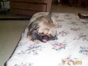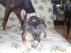 I told him "NO WAY" and so the surgery was done. Asasha survived with flying colors. This little Peke came home from the vets with one eye lid sewn shut and half a shaved face! She was so cute! We were lucky and had a good 3 1/2 months before the second eye began to give her problems. This time we went to a Specialist who arranged for the second eye to be removed. Again, Asasha came home with her eyelid-sewn shut and the other half of her face shaved. It was funny, the vet said "I hope she doesn't act more blind now"! She didn't. She was perfectly amazing in everything she did.