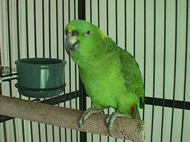 I'm a Yellow Nape Amazon parrot... one of the better known species of Amazons for their speaking ability. I'm almost all green in color except for a patch of yellow just above my beak and a larger patch of yellow on the back of my head, better known as my nape. That's where I get my name from. The Yellow Nape amazon is one of the sub-species of the nominate Yellow Fronted Amazon parrots that are found over a wide area, ranging from Central to South America. A number of different forms are recognized, all of which differ according to the extent of yellow plumage on their heads. The yellow plumage on the Yellow Nape amazon parrot (A. o. auropalliata) is confined to the nape of the neck and this particular sub-species is found from Mexico to Costa Rica and Honduras. The amazons may also show some variation in size. This parrot is also highly valued, both as a companion and as a mimic. Before purchasing one of these parrots, check that the nostrils are an even size, and show no sign of discharge or of being enlarged or blocked. These signs will usually indicate a respiratory infection to which these parrots are susceptible and which is often difficult to cure.