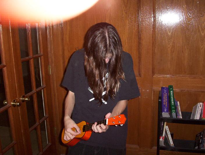 Slow moment. We eventually had to put the mic inside the ukulele for it to show up on the recording... too damn quiet of an instrument. That would be Zach's thumb in the top left corner.