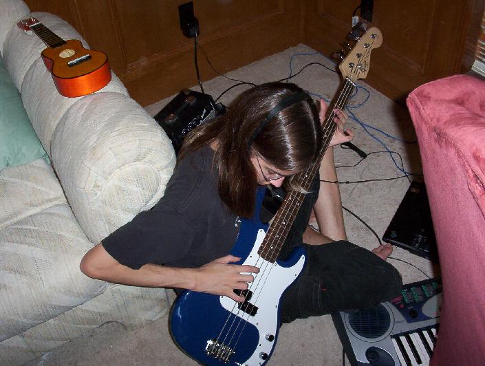 Simon tries (and fails) to synch up the bass with his own ukulele layer.