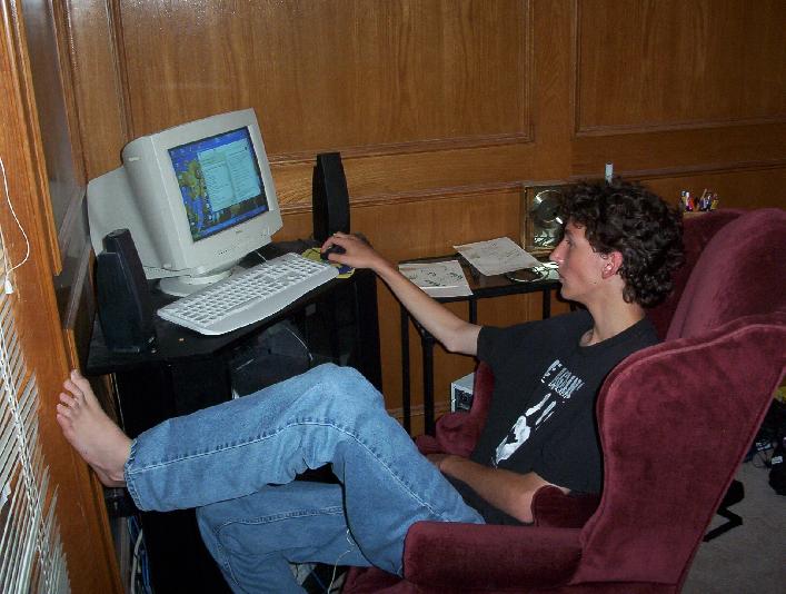 Is he actually playing the drum keyboard with his feet? Yes. Is he doing it well? I don't think I even have to answer that.