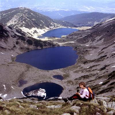 Aan de voet van het gebergte ontspringen vele heet-water mineraalbronnen waaronder de Sapareva Bania met zijn gemiddelde temperatuur van 100 graden C. Datgene wat men van een ongerepte natuur verwacht vindt men hier ook inderdaad terug, de zwarte adelaar, valken, herten, wilde beren, berggeiten, wolven en zelfs everzwijnen lopen hier ongestoord rond. Mocht u een bezoek brengen aan het Rila gebergte, sla dan niet het gebied over van de zeven meren, allen bevinden zich boven de 1800 meter boven de zeespiegel en zijn een adembenemend schouwspel om te zien. |