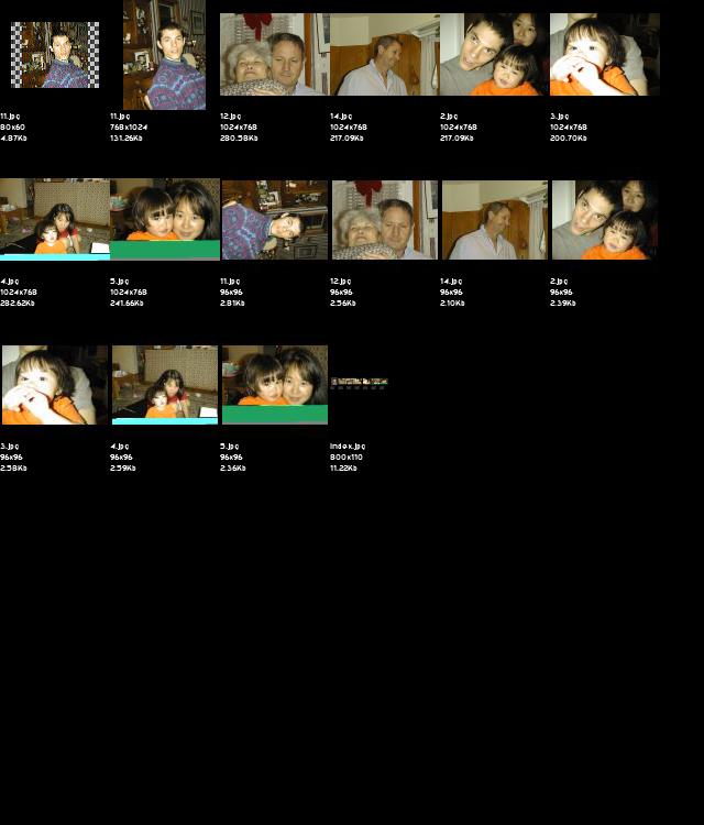 Look at the index.jpg for a picture with all the thumbnails in case your connection makes popping through each 250k picture labourious. The filename is listed under each thumbnail in the index.jpg so you'll have to go back to the directory and click on the full image you'd like to view manually for now. Sorry, when I get thumbnail generation working you'll get the display of the thumbnail and just click to get the big image again. The naming convention for files and directories is Month-Day-Year for now. Now back to law school...