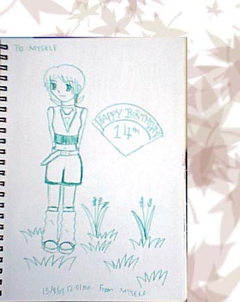 | 2001Bday | Drawn on my sec 2 B'day. Get the idea from yuffie. |