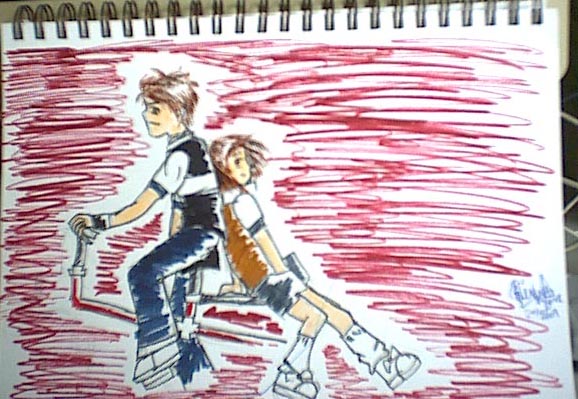 | Antique | Drew it, scanned it and made used of the photoshop~! Drawn cause I love SEPHIROTH!! Notice that guy looks abit like sephiroth and the girl is suppose to be me. (=>_<=) |