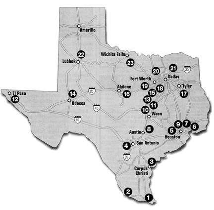 Directions: Take 1-30 50 miles east of Dallas to Exit 96 in Greenville,