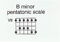 นักกีตาร์ทุกคนคงคุ้นเคยดีกับ Minor pentatonic scale ซึ่งเป็น minor scale ที่ประกอบด้วยโน๊ตเพียง 5 ตัว ตัวอย่างตามชาร์ตข้างล่างนี้ ซึ่งเป็นตัวอย่างของ B minor pentatonic;