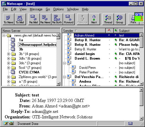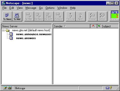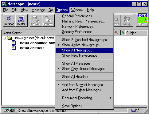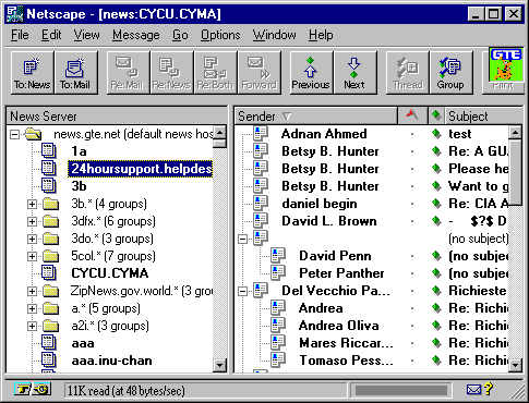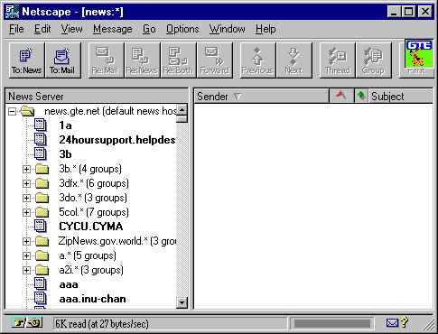 You should see the next screen below. It may take a few minutes to download all of them. GTE has over 28,000 newsgroups.