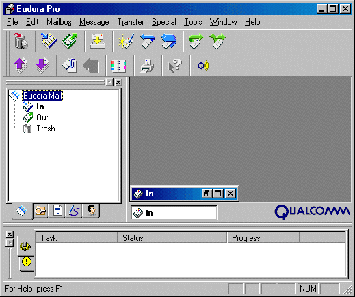 All of the menu options are clickable to let you see what is available under each selection. The one we will be concerned with is under Tools. Click Tools and then Options to run through the configuration of Eudora Pro 4.1.