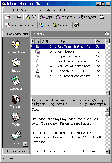 This will show you how to configure Outlook 98 if you want to use it instead of your browser email client. All menu selections are clickable in order to give you an idea of what is there. The only drop down menu item that is selectable