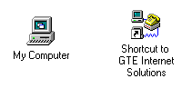 Click My Computer to go through the settings of Network, Dial-Up Networking, Modems and Add/Remove Programs just as you would in Windows95. Click on Shortcut To GTE Internet Solutions for the 'Connect To' screen.