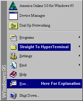 Go to the Start button. Select Run to walk the Member through this. Straight to Hyperterminal is just that.