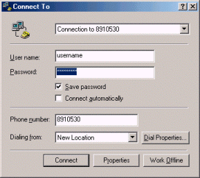 Fill in your user name, password and dial-up number.