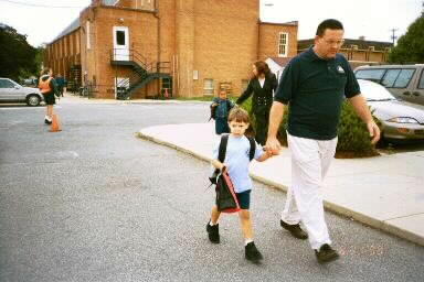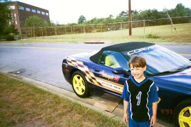 Welcome to my page. My name is Jeremy Wrenn. I am 5 years old and I am in the kindergarten at St. John the Evangelist Roman Catholic School in Clinton MD. Here is a picture of my dad and me on my first day of schoolMy brother, Andy is in the 6th grade. My grandad is helping me build my own page. Here is a picture I drew of a Police Car. This is a picture of a "Toys Are Us" truck I drew. When grandad has time he will help me put up stuff about my favorite thing in the whole world, NASCAR racers and my favorite driver, Jeff Gordon. He drives number 24. I drew this NASCAR on Gram's computer. Here I am by a real pace car My page background is red because red is my favorite color.