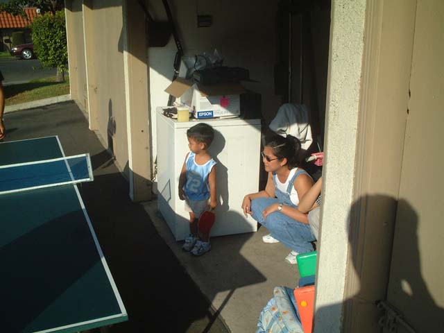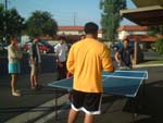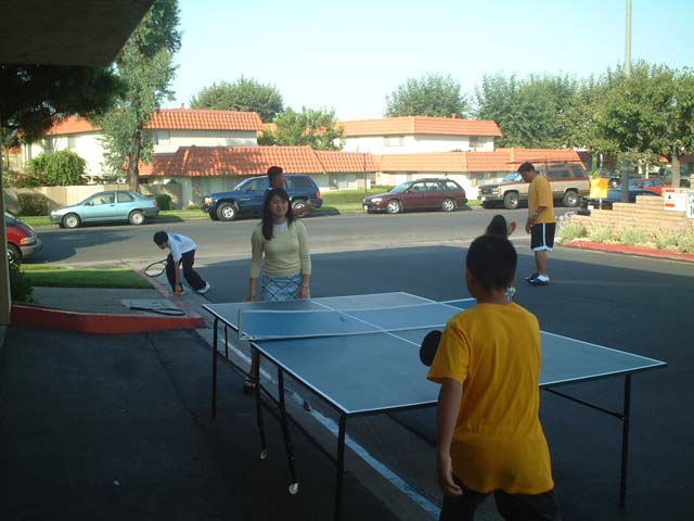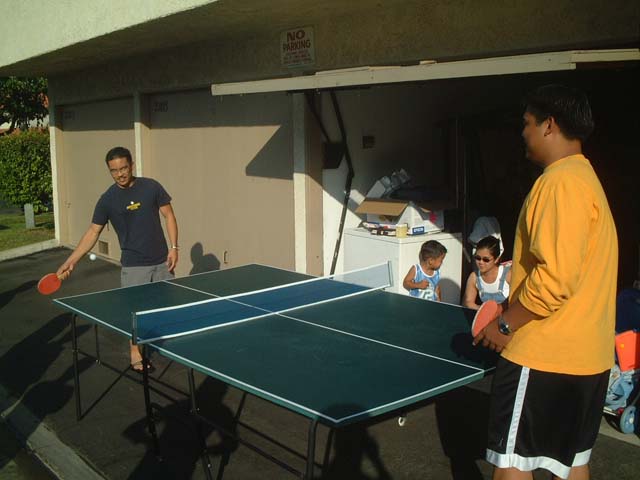 Mike and Ken play a little table tennis while Zionand Cathy look on.