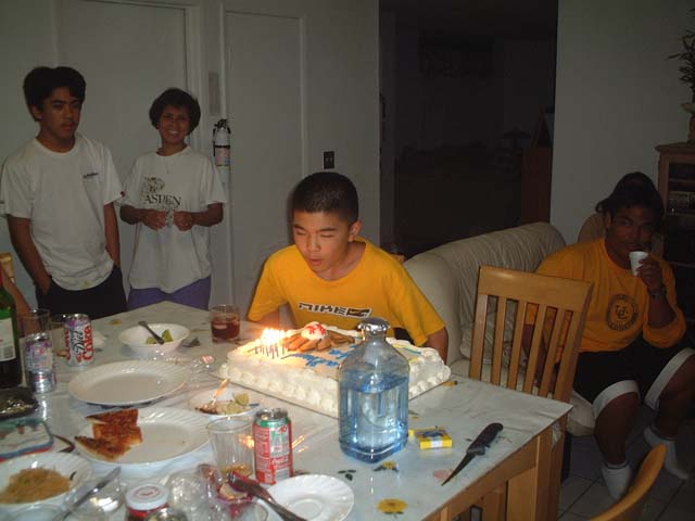 Mathew blows out the candles on his cake when we got to his place. Our parents were waiting for us to return.