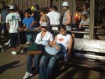 Cathy and Bridget sit down to rest while everyone else does their business.