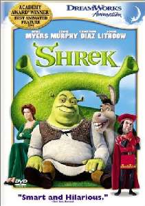 | William Steig's delightfully fractured fairy tale is the right stuff for this computer-animated adaptation full of verve and wit. Our title character (voiced by Mike Myers) is an agreeable enough ogre who wants to live his days in peace. When the diminutive Lord Farquaad (John Lithgow) evicts local fairy-tale creatures (including the now-famous Seven Dwarfs, Pinocchio, and the Gingerbread Man), they settle in the ogre's swamp and Shrek wants answers from Farquaad. A quest of sorts starts for Shrek and his new pal, a talking donkey (Eddie Murphy), where battles have to be won and a princess (Cameron Diaz) must be rescued from a dragon lair in a thrilling action sequence. The story is stronger than most animated fare, but it's the humor that makes Shrek a winner. The PG rating is stretched when Murphy and Myers hit their strides. The mild potty humor is fun enough for 10-year-olds but will never embarrass their parents. Shrek is never as warm and inspired as the Toy Story films, but the realistic computer animation and a rollicking soundtrack keep the entertainment in fine form. Produced by DreamWorks, the film also takes several delicious stabs at its crosstown rival, Disney. --Doug Thomas |