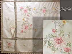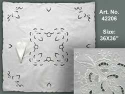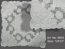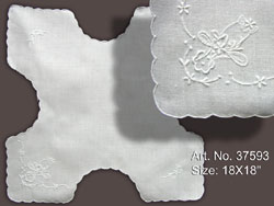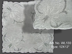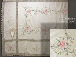 Wholesale of embroidery tablecloths, bed sheets, handkerchiefs, guest towels, doilies ,tray cloths, placemats, batten lace, battenburg lace, Venice lace, crochet lace, reticella |