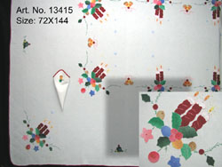 NO.8505 White polyester/cotton machine embroidery with Christmas design tablecloths