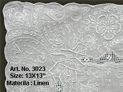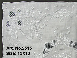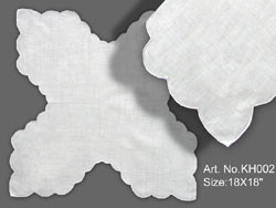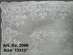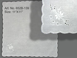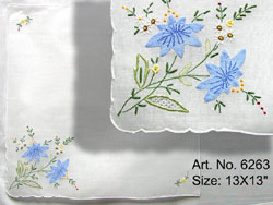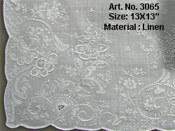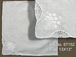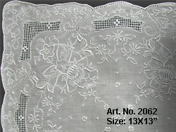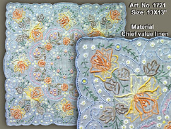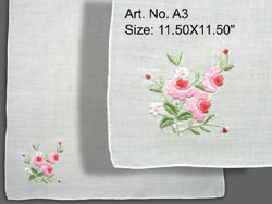 handkerchiefs are sold by dozen but Art. No. 3037A and Art. No. 1721 can be sold in 3 pcs. per set. Art. # 3037A 13x13" Art. # 1721 13x13" |